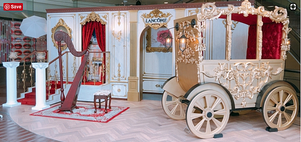 今年蘭蔻2018年6月起完美女人活動的攝影棚場景就運用了”線板、雕花、法式廊柱”打造法國宮廷場景,