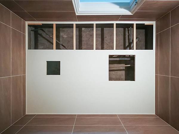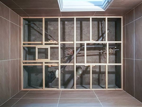 浴室/廁所翻新後,就是要完成天花板的部分,把一些管線遮蓋起來並安裝通風扇。