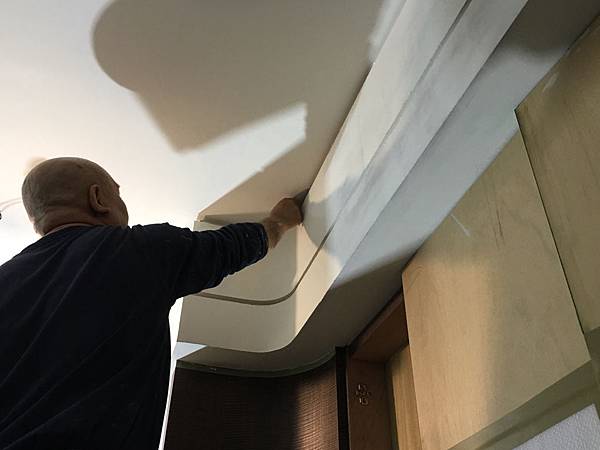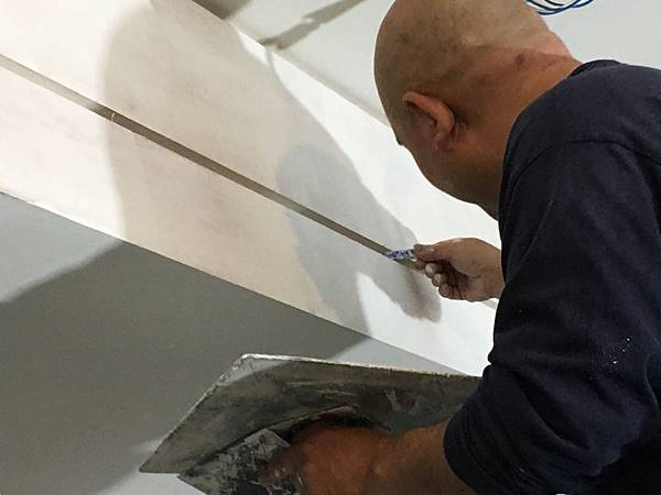 溝縫也是油漆師傅最不喜歡處理的設計之一,不過這次走現代風格,免不了有部份設計會有溝縫線板。