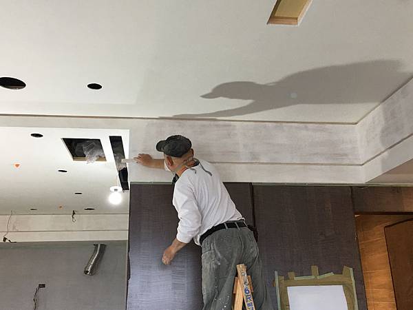 天花板油漆批土,還沒上面漆,就很賞心悅目