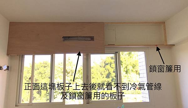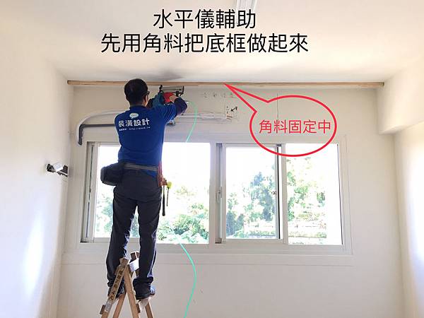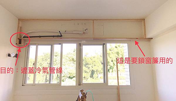 藉由以下圖示說明「冷氣管線包覆及窗簾盒」的施工過程。